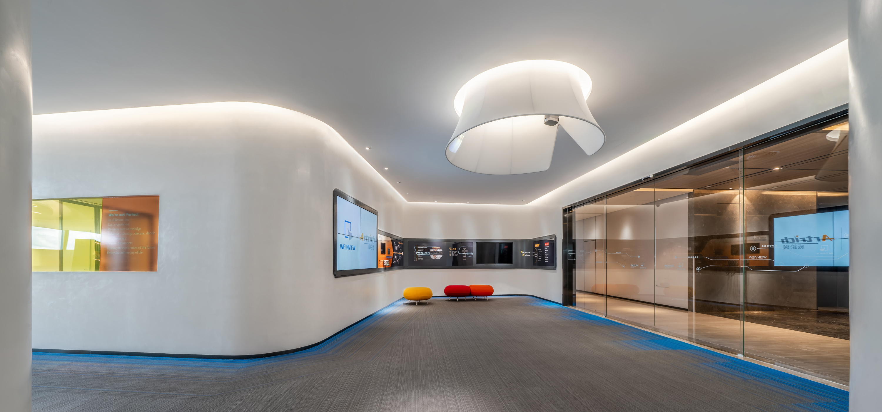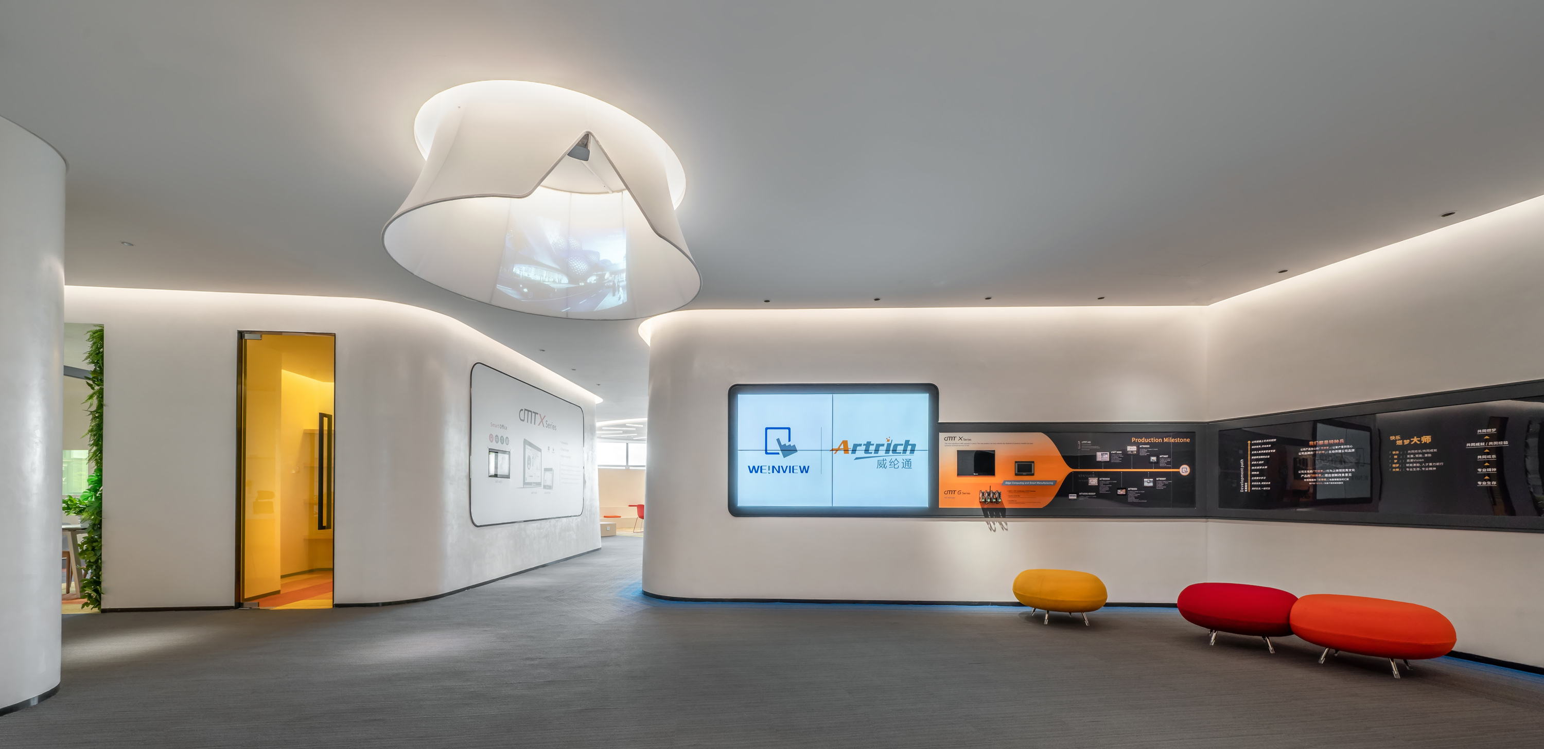 整個office隨處可見weinview觸摸屏,每一個功能區域都是用自己的產品搭建的智能方案。