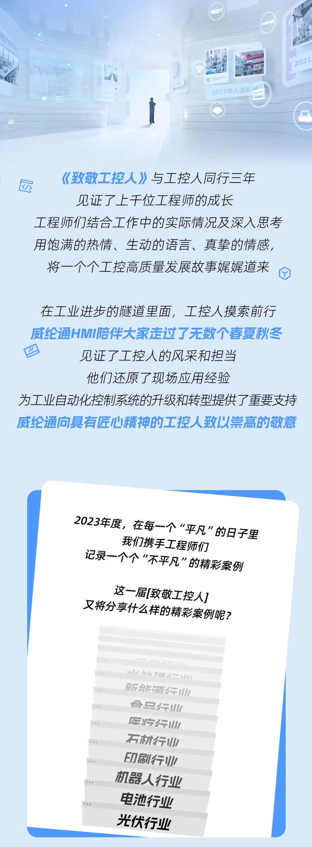 很多東西是需要時間才能建立的,用心打好基礎(chǔ),一切該來的都會來。祝愿“致敬工控人”越辦越好,祝愿威綸通發(fā)展壯大,更上一層樓。
